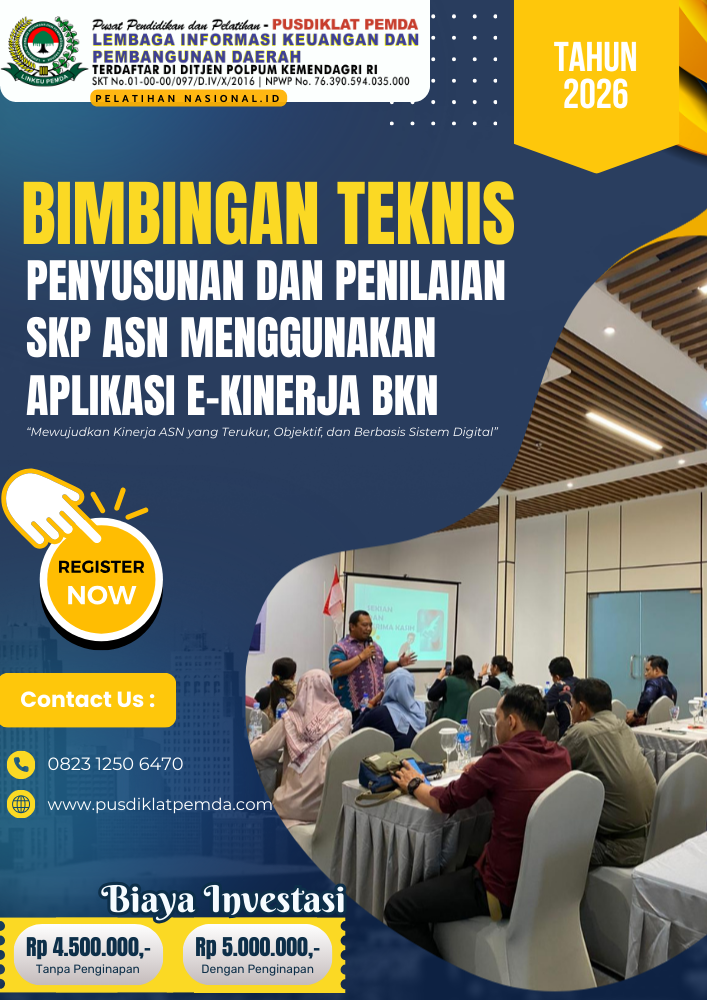 Segera tingkatkan kompetensi aparatur di instansi Anda melalui bimbingan teknis yang aplikatif, sesuai regulasi, dan berorientasi pada peningkatan kinerja ASN dan kualitas pelayanan publik.