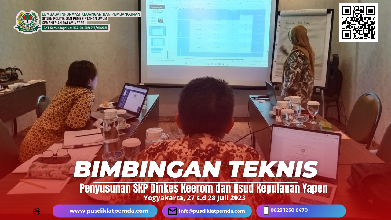 Bimtek Penyusunan SKP Dinkes Keerom dan Rsud Kepulauan Yapen Bimtek ini Bertujuan Agar dapat Membantu Dokter, Bidan Dan Tenaga Kesehatan Lainnya Untuk Menyusun Rencana SKP Sesuai Ketentuan Peraturan Menteri Pendayagunaan Aparatur Negara dan Reformasi Birokrasi RI No. 6 Tahun 2022 Tentang Pengelolaan Kinerja Pegawai ASN Aparatur Sipil Negara dan Peraturan Menteri Pendayagunaan Aparatur Negara dan Reformasi Birokrasi RI No.1 Tahun 2023 Tentang Jabatan Fungsional.