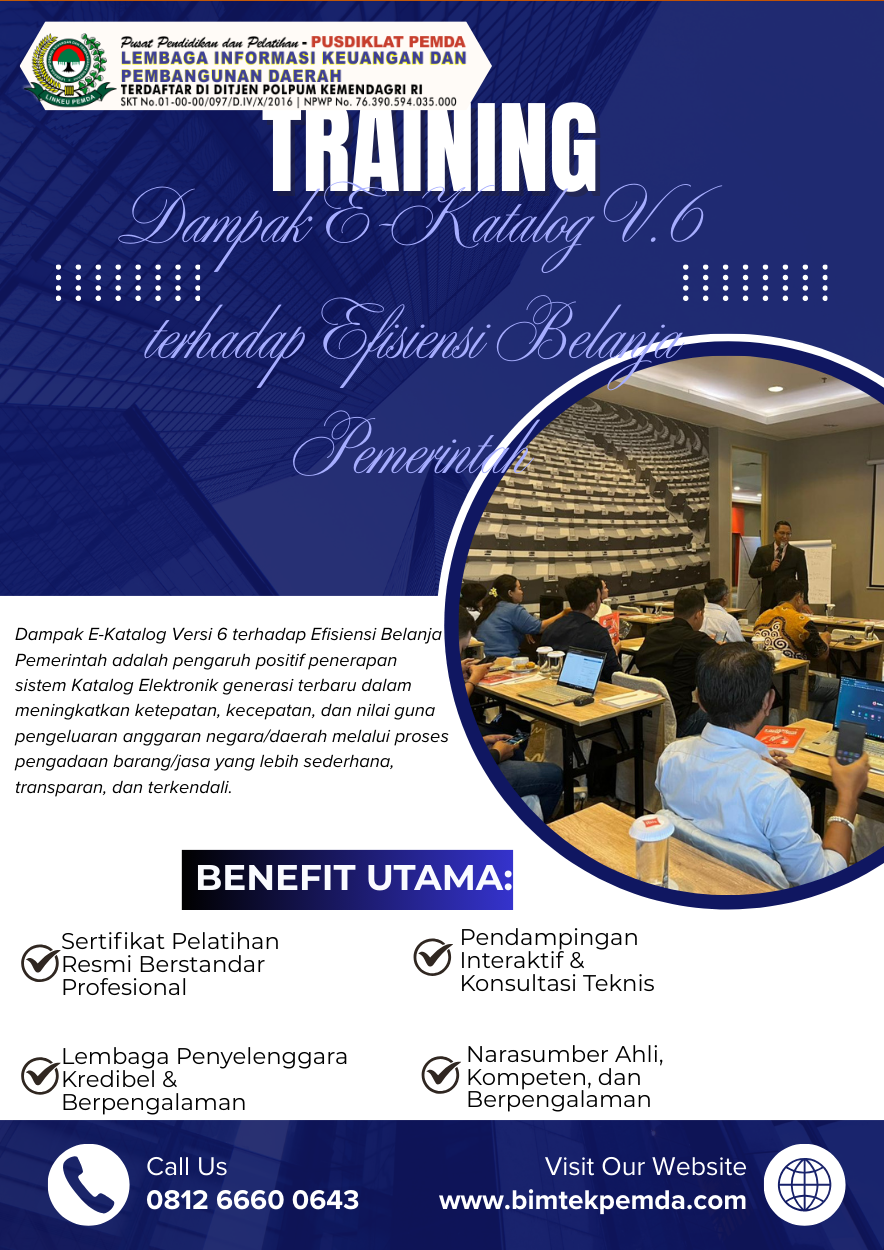 Dengan optimalisasi E-Katalog V.6, pemerintah memiliki instrumen yang kuat untuk meningkatkan efisiensi belanja tanpa mengorbankan akuntabilitas dan kepatuhan. Tingkatkan pemahaman dan kompetensi pengelola pengadaan melalui Bimtek E-Katalog V.6 dan E-Purchasing Pasca Perpres 46/2025 agar belanja pemerintah semakin efektif, transparan, dan berorientasi pada hasil.