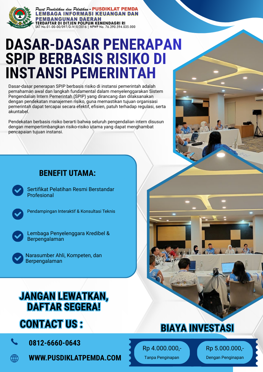Dasar-dasar penerapan SPIP berbasis risiko di instansi pemerintah untuk memperkuat pengendalian intern, tata kelola, dan akuntabilitas kinerja.