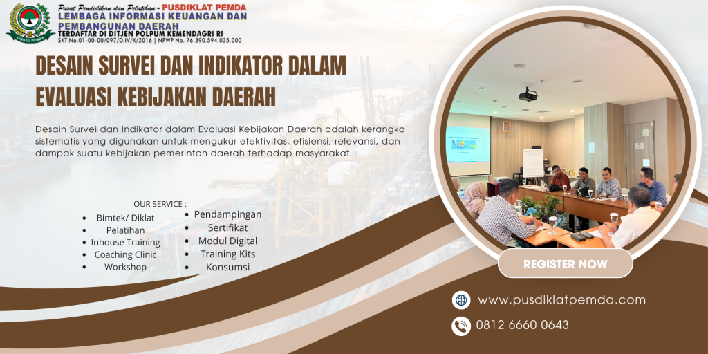 Jika Anda ingin memperdalam keterampilan dalam perancangan survei, analisis indikator, dan penerapan evaluasi berbasis data, bergabunglah dalam program Bimtek Evaluasi Kebijakan Pembangunan Daerah berbasis Evidence Based Policy untuk membangun daerah yang adaptif, transparan, dan berorientasi hasil.