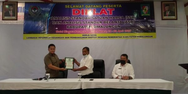 Menindaklanjuti Surat Permintaan Fasilitasi Kegiatan Diklat Analisis Standar Satuan Harga Dan Analisis Standar Belanja Badan Kepegawaian,Pendidikan dan Pelatihan Daerah Kabupaten Simalungun Dengan No Surat 800/701/27.4/2022 Pematang Raya,01 April 2022 Hal Ini Lembaga Informasi Keuangan dan Pembangunan Daerah Mengucapkan Terima kasih Sebesar – besarnya khususnya kepada Kepala Badan Kepegawaian,Pendidikan dan Pelatihan Daerah Kabupaten Simalungun telah Menunjuk kami Lembaga Informasi Keuangan dan Pembangunan Daerah sebagai Fasilitator dalam Diklat Analisis Standar Satuan Harga Dan Analisis Standar Belanja