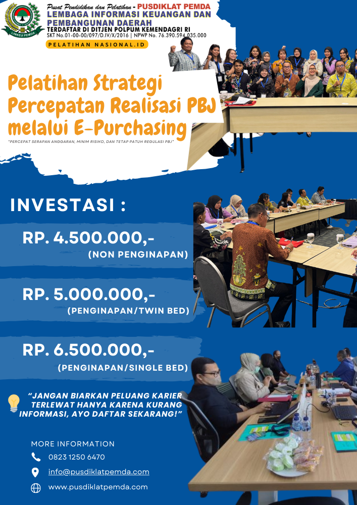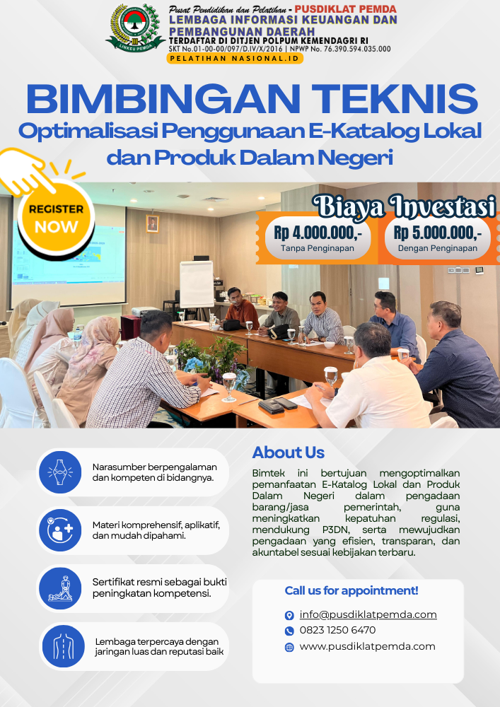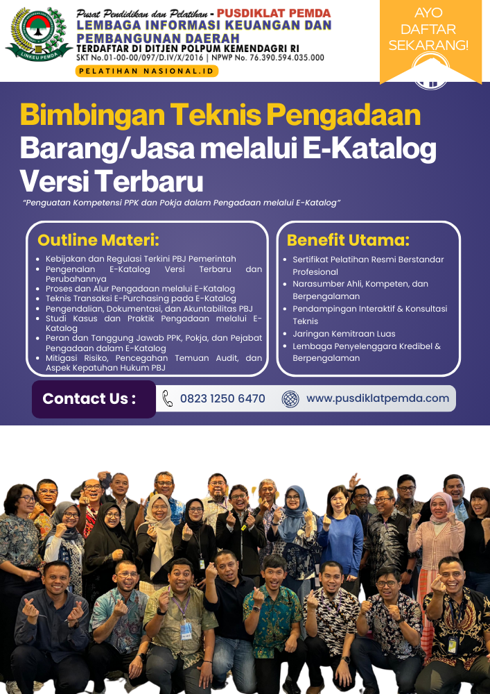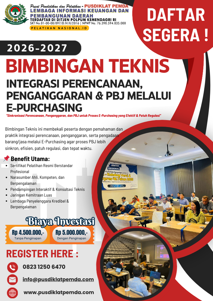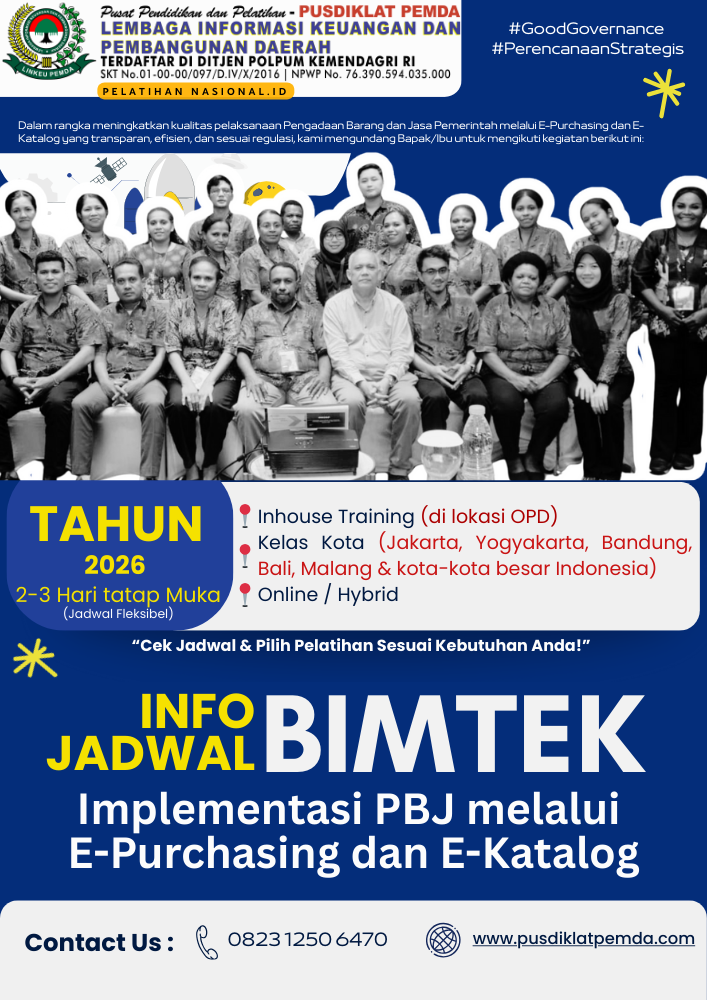 Seiring dengan dinamika regulasi pengadaan barang/jasa, aparatur pemerintah dituntut untuk memahami secara menyeluruh mekanisme PBJ berbasis digital. Oleh karena itu, Info Jadwal Terbaru Bimtek Implementasi PBJ melalui E-Purchasing & E-Katalog menjadi referensi penting bagi instansi yang ingin meningkatkan kompetensi SDM, meminimalkan risiko kesalahan prosedur, serta mempercepat realisasi anggaran.