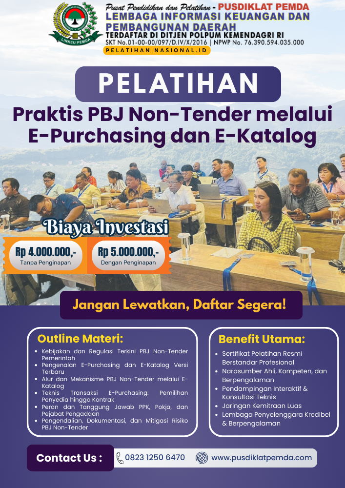 Untuk meningkatkan kompetensi aparatur dalam melaksanakan pengadaan non-tender yang patuh regulasi dan efisien.