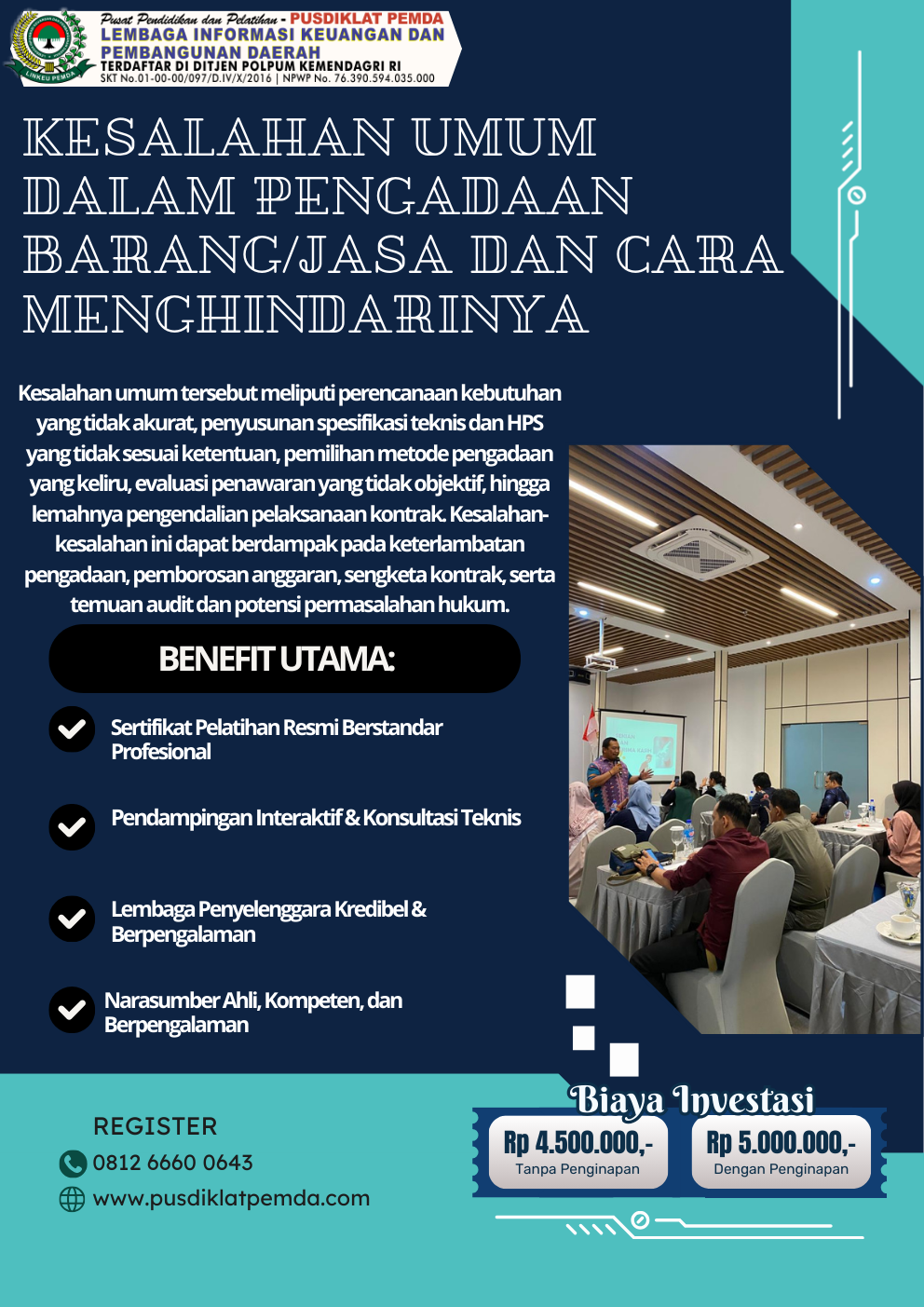 Pusdiklat Pemda didukungan Legitimasi dibawah naungan Kementerian Dalam Negeri dan dibantu tenaga marketing yang professional dan handal, kami siap ikut serta meningkatkan kualitas dan mutu SDM khususnya bidang keuangan dari berbagai kalangan dimana pendidikan yang berkualitas adalah tolak ukurnya.