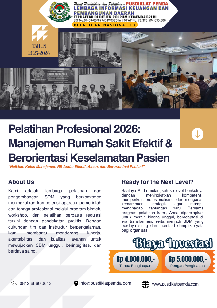 Pelatihan Profesional 2026: Manajemen Rumah Sakit Efektif dan Berorientasi Keselamatan Pasien