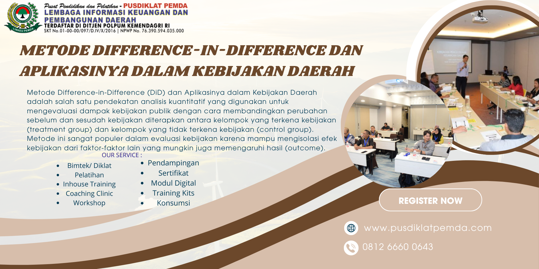 Evaluasi kebijakan publik di tingkat daerah memerlukan pendekatan ilmiah agar hasilnya dapat dijadikan dasar dalam pengambilan keputusan. Salah satu metode yang paling banyak digunakan oleh peneliti kebijakan adalah Difference-in-Difference (DiD). Metode ini membantu pemerintah daerah mengukur dampak dari sebuah kebijakan dengan membandingkan perubahan yang terjadi antara kelompok yang terkena kebijakan (treatment) dan kelompok yang tidak (control).