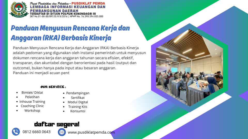 ✨ Wujudkan tata kelola anggaran yang transparan dan efisien dengan mengikuti pelatihan penyusunan RKA Berbasis Kinerja yang dirancang khusus untuk memperkuat kinerja instansi Anda.