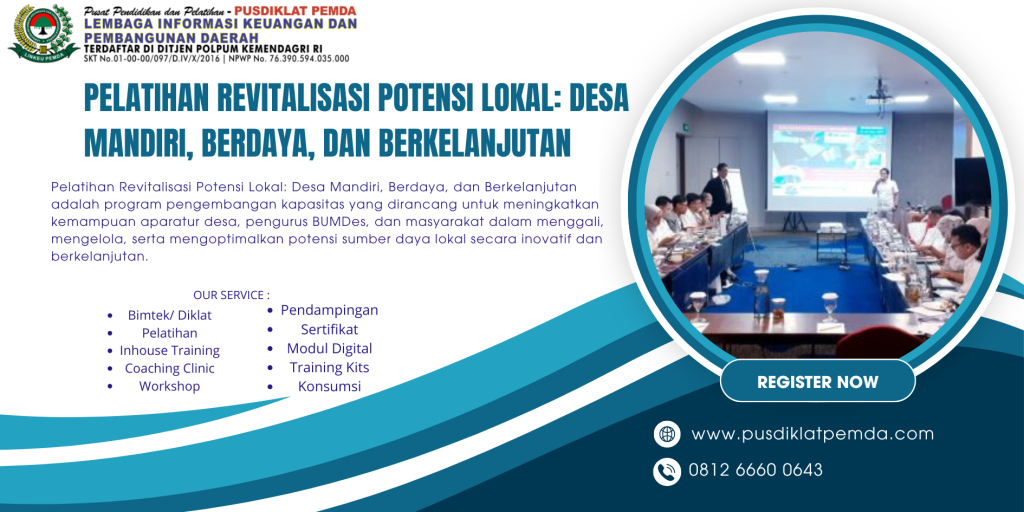 Dalam banyak upaya pembangunan, seringkali fokus utama tertuju kepada dukungan finansial, infrastruktur, atau kebijakan top-down. Namun, inti keberlanjutan adalah ketika suatu desa mampu berjalan sendiri dengan memberdayakan potensi lokalnya—baik sumber daya alam, budaya, sosial, maupun manusia. Pelatihan revitalisasi potensi lokal adalah salah satu strategi jangka panjang untuk menyiapkan desa mandiri, berdaya, dan berkelanjutan.