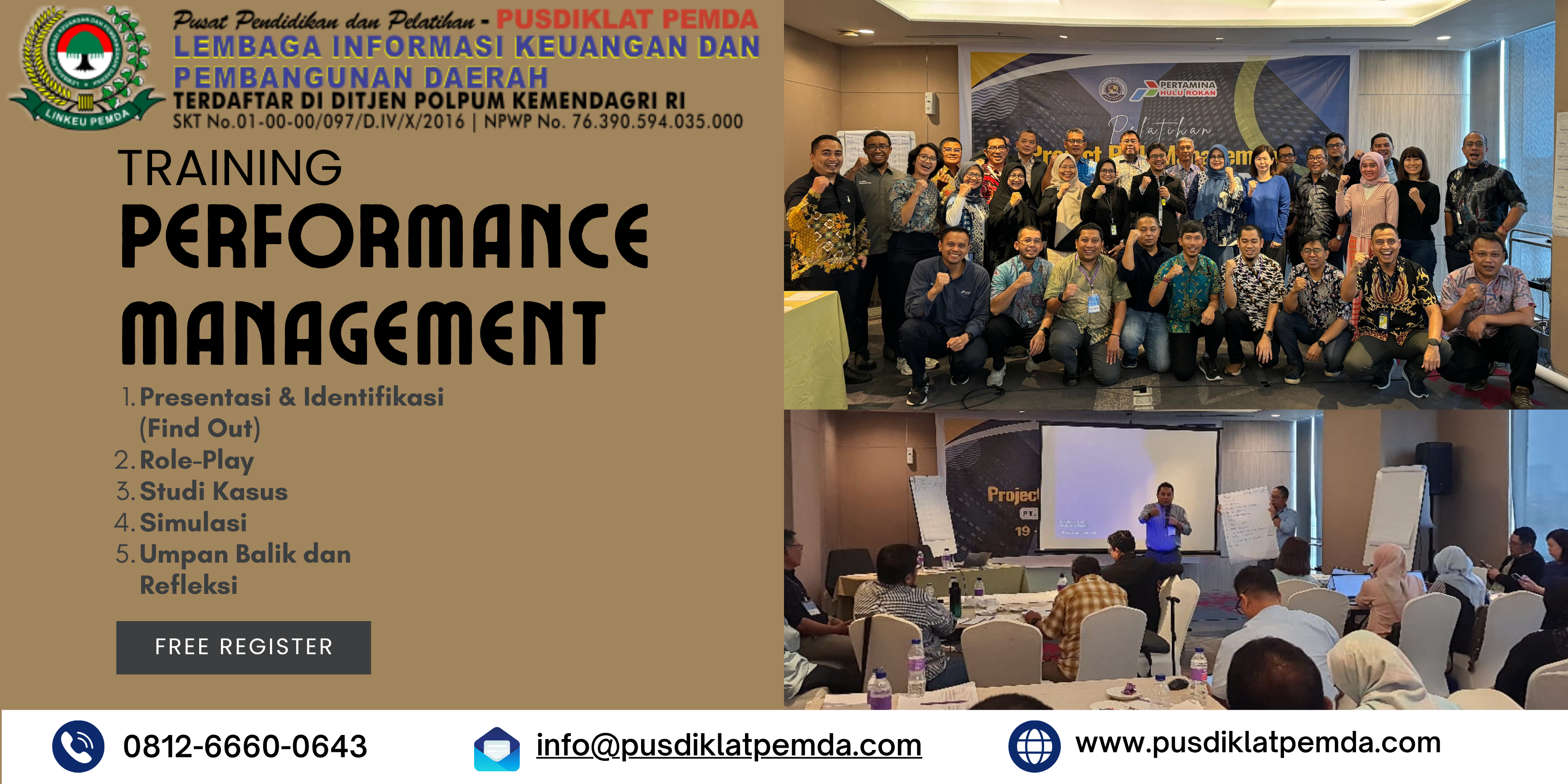 Untuk itu kami dari Pusat Pendidikan Keuangan Dan Pelatihan Pemerintahan Daerah (PUSDIKLAT PEMDA) mengundang bapak/ibu peserta untuk untuk melakukan interaksi secara aktif dalam kegiatan ”TRAINING PERFORMANCE MANAGEMENT” kami sangat mengharapkan kehadiran atau perwakilanya bapak/ ibu.